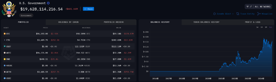 出人意料的是,美国政府实为全球最大比特币持有者之一。多年来通过执法行动,从网络犯罪分子、洗钱组织及暗网市场查获大量比特币,当前持有量约 20 万枚,市值接近 200 亿美元。