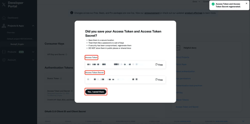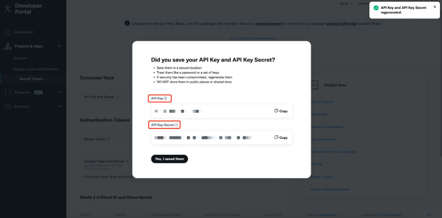 确保保存这些凭证,因为我们将在代码中使用它们。