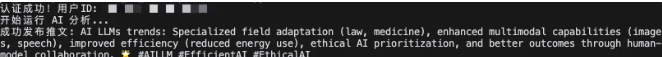 这将生成一条关于AI Agent的推特并发布到你的账户。
