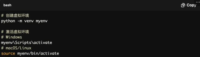 使用虚拟环境可以隔离项目依赖,避免与其他项目的冲突。可以通过以下命令创建和激活虚拟环境: