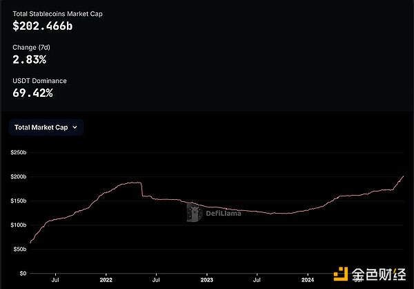 2024 年可以说是稳定币的爆发之年。根据 DefiLlama 的数据,稳定币的总市值已经突破了 2000 亿美元,其中 USDT 创下了 1390 亿美元的历史新高,而 Circle 发行的 USDC 市值也达到了 410 亿美元。市场的持续增长并非偶然。我们认为,这背后有两个主要驱动力: