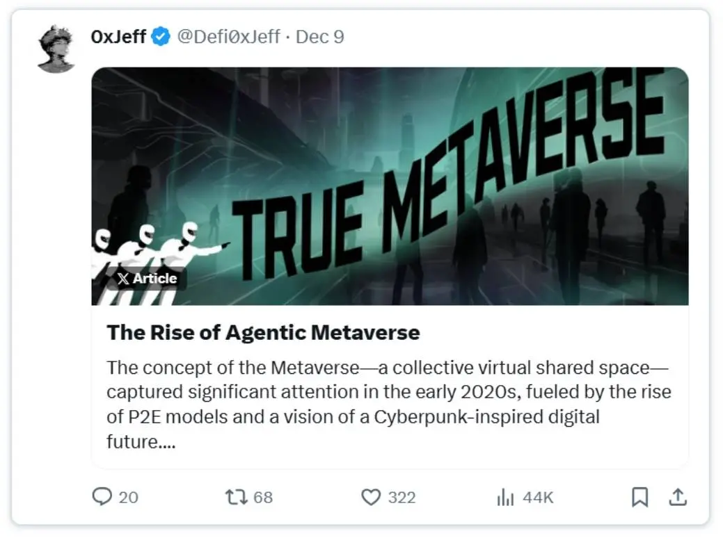 @hyperfy_io:这是一个平台,使用户能够创建定制的元宇宙空间。他们目前还没有 Token,但他们的基础设施正在为由代理驱动的虚拟世界开辟道路。