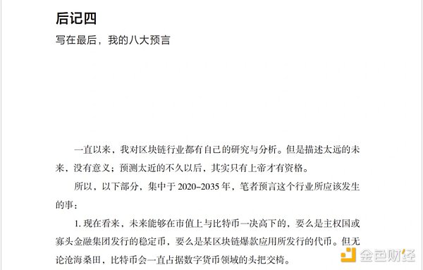 多花一些时间说说 BTC 的产业中观论点。我在 2021 年所著书籍的末尾,八大预测中的第一点就提到了,BTC 是 unbeatable 的。参考我的书籍电子版《解锁新密码 - 从区块链到数字货币》后记四 –