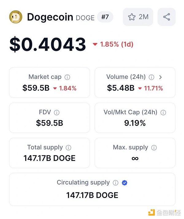 Doge 当前市值和交易量