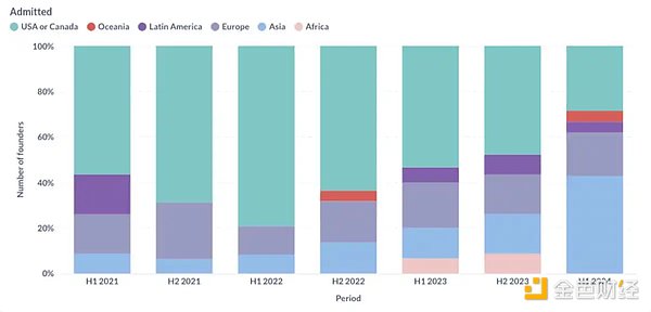 2022 年下半年,许多 DeFi 项目被迫迁移到美国以外的地区,据 Alliance DAO 联创 qw 的说法,「两年前,大约 80% 达到标准的加密初创公司位于美国,然而,这一比例自那时起持续下降,目前仅约为 20%。」