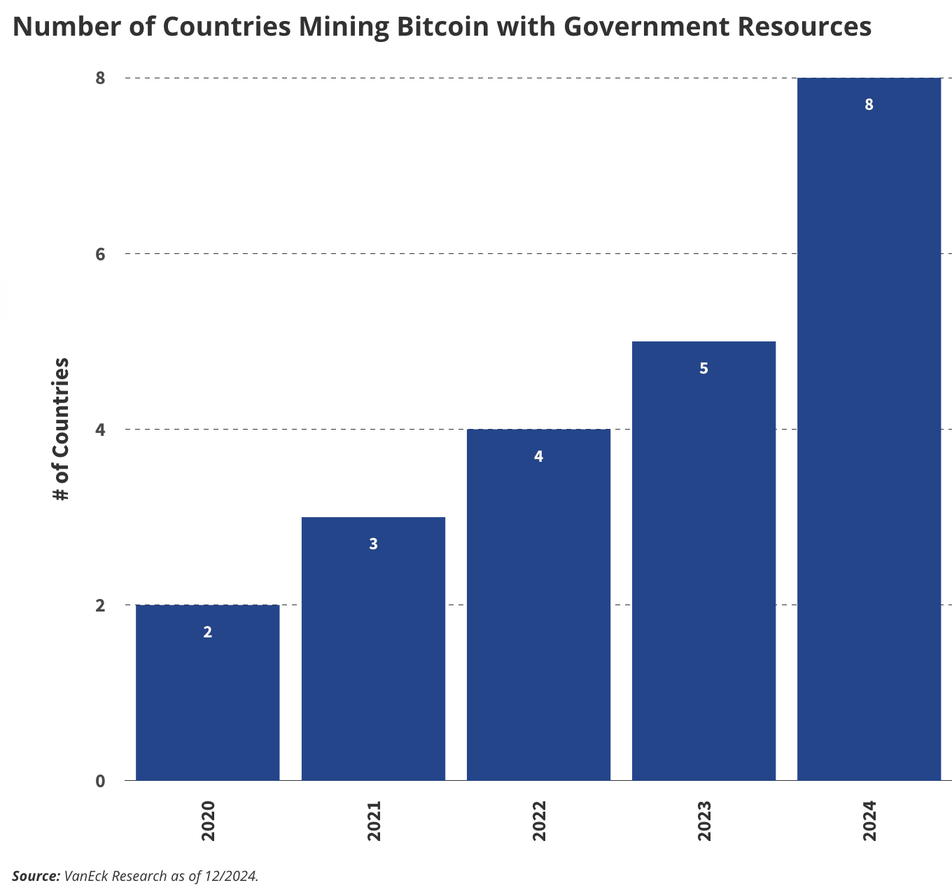 在比特币挖矿方面,使用政府资源挖矿的国家数量预计将达到两位数(目前为七个),这得益于金砖国家对加密货币的采纳不断增加。这一趋势受到俄罗斯表态计划使用加密货币结算国际贸易的推动,进一步凸显比特币的全球影响力。